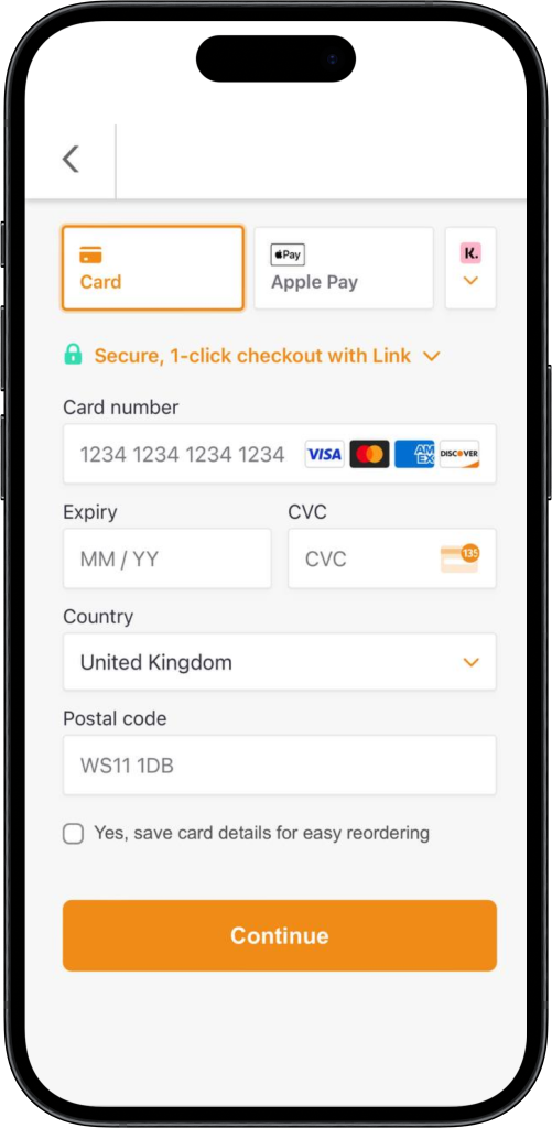 The payment gateway used by our ordering system is Stripe, ensuring the best user experience for your customers, as they won’t need to leave the Ordering System App.