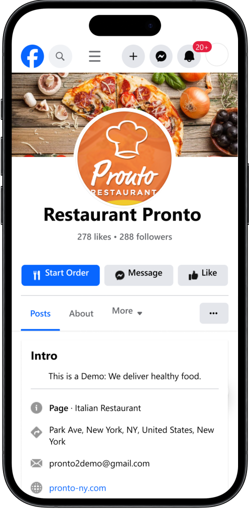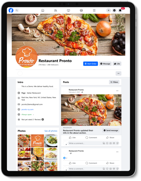 Our standard design features a modern one-page layout, similar to our demo website. Additionally, we provide a demo of the Facebook ordering page.
